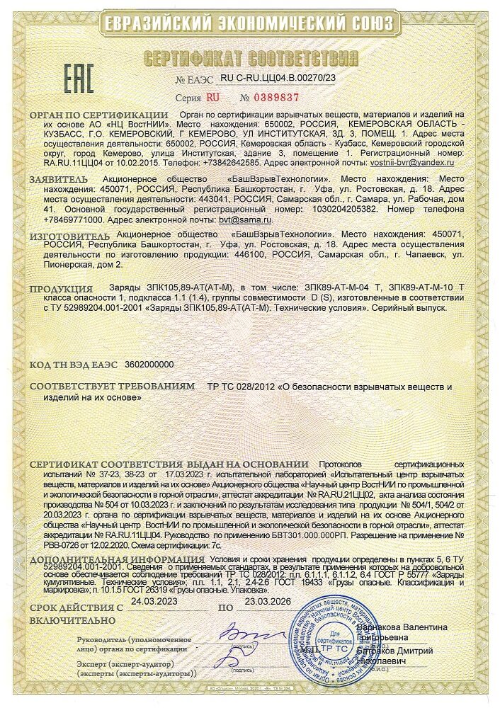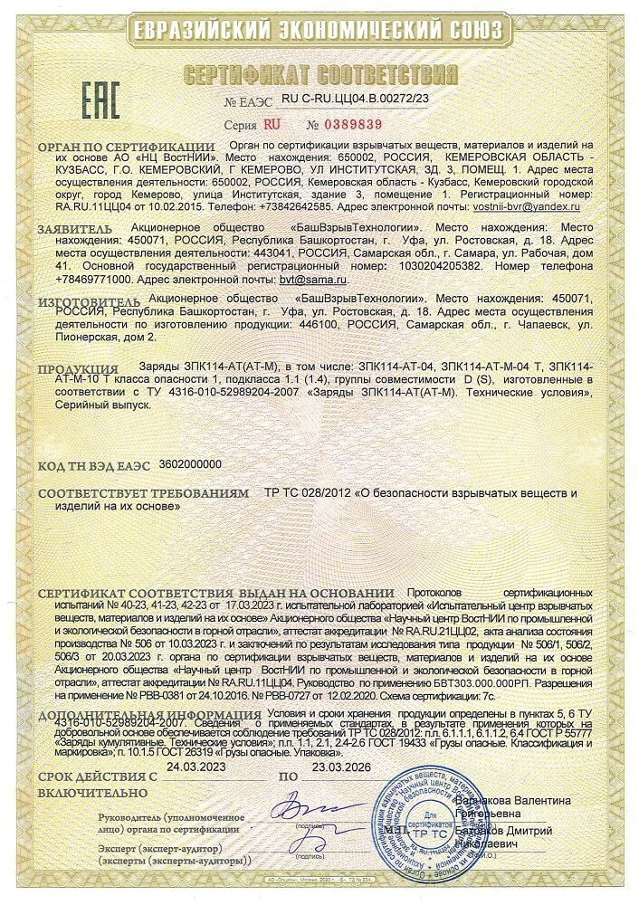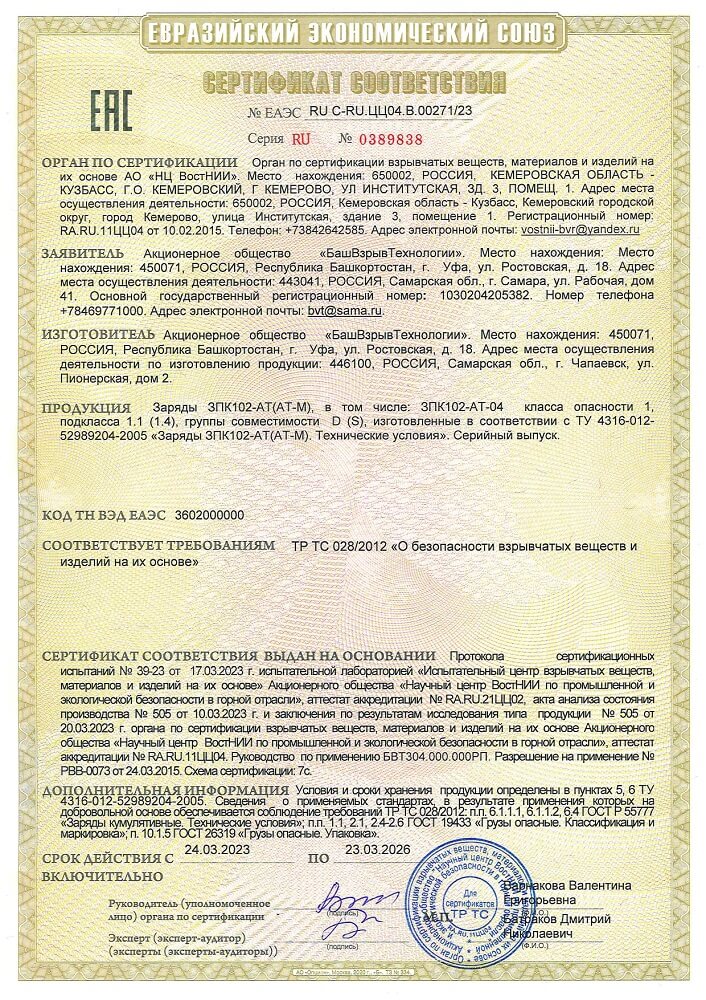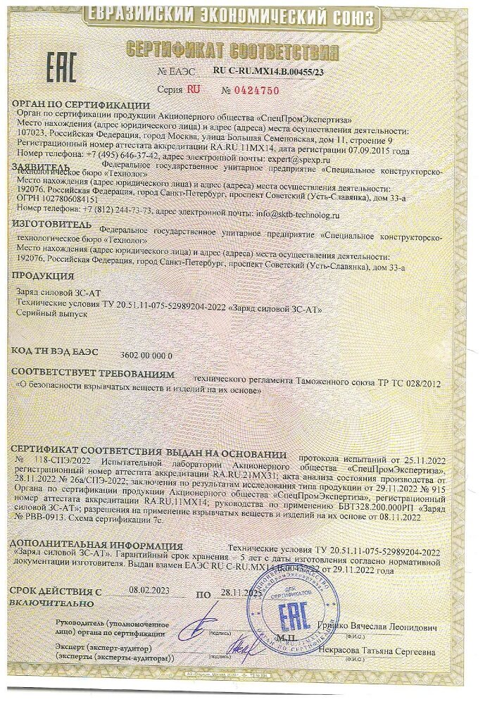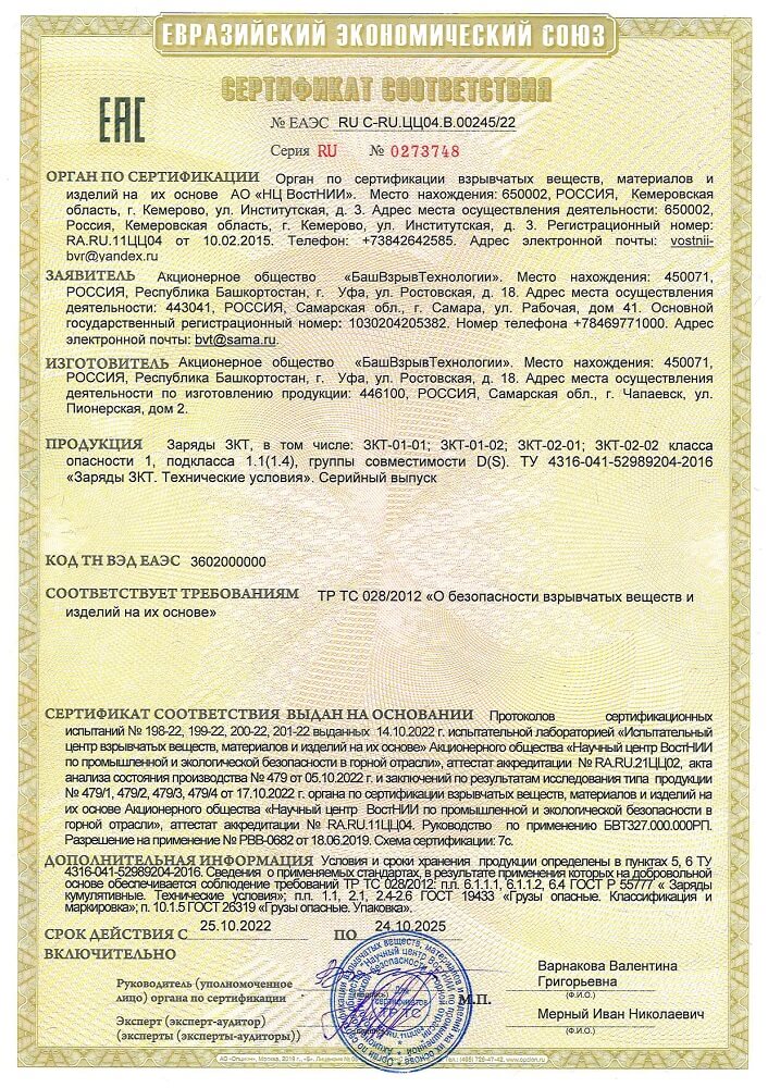 Евразийский экономический союз (Сертификат соответствия) Заряды ЗКТ