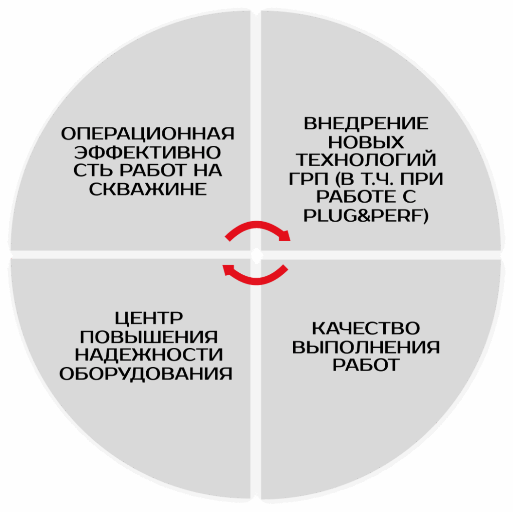 Сопровождение всех этапов ГРП: подготовка скважины, перфорация, закачка жидкостей и проппанта, промывка и изоляция интервалов