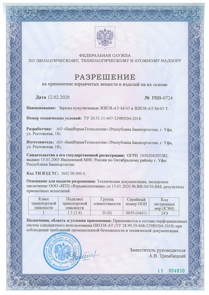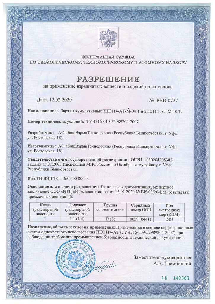 Разрешение на ПВВиИНИО (ЗК ЗПК50-АТ-М-03 Т) 2020