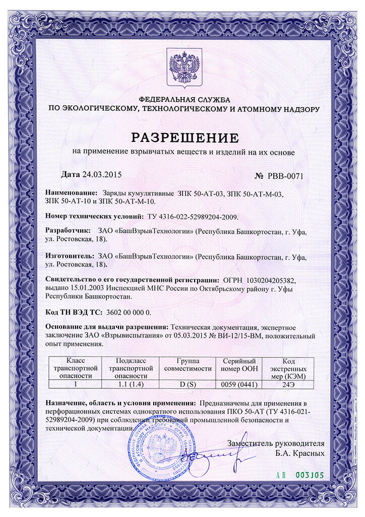 Разрешение на ПВВиИНИО (ЗК ЗПК 50-АТ)