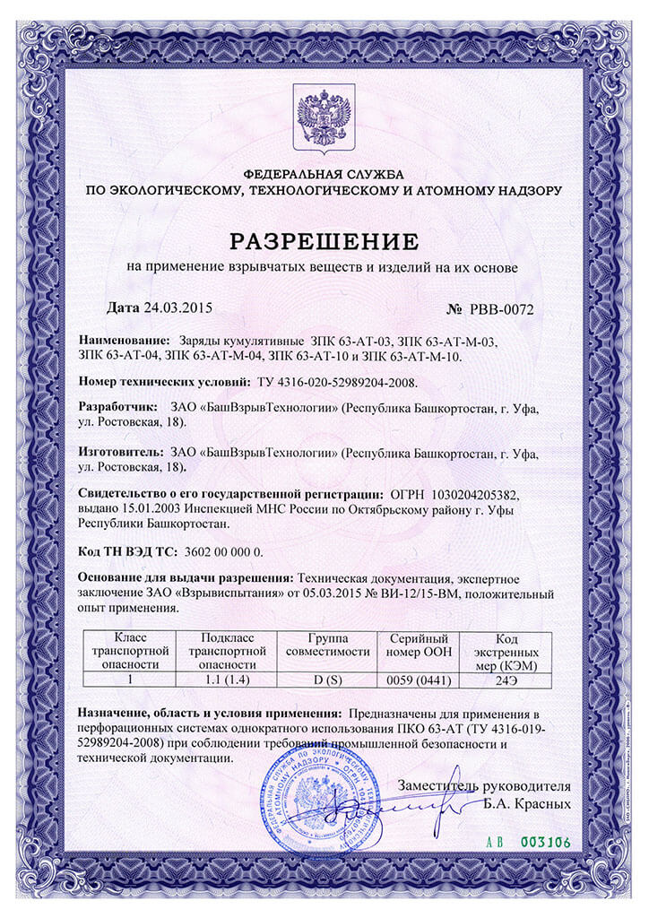 Разрешение на ПВВиИНИО (ЗК ЗПК 63-АТ)